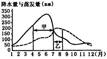 4、单选题 读“我国某地降水量(实线)与蒸发量(虚线)的季节变化曲线图”,完成15—16题。