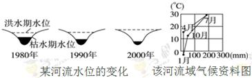 2、单选题 下面为“某河流水位变化及该河流域气候资料统计示意图”。读图,完成下列各题。