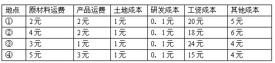 5、单选题 某企业计划利用甲地的原料,在①②③④四地中选择一处进行生产,然后把产品销往乙地。经论证四地生产该产品的单位产品成本如下表所示,据此回答问题。