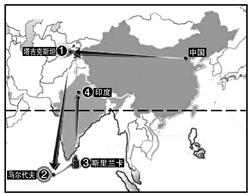 2、单选题  2014年9月11日至19日,习近平主席对塔吉克斯坦、马尔代夫、斯里兰卡、印度进行国事访问。到访四国都是“一带(丝绸之路经济带)一路(21世纪海上丝绸之路)”沿线的重要站点。读下图回答下列各题。