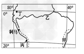 1、单选题 利马是世界著名的“旱城”:街道上没有排水沟渠,房屋也没有雨檐,百货店中也没有雨具出售。但一年之中,约有半年是大雾弥漫季节。浓雾移动时,如霏霏细雨,当地人称这种浓雾为毛毛雨。结合利马及周边区域图,完成1 -4 题。