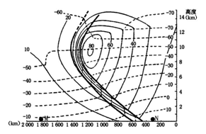 5、单选题 下图 为某地理事物的剖面图,图中实线(细线)为等风速线(m/s),虚线为等温线(℃),据此完成下列各题。