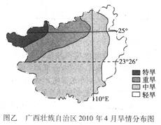 (2)请至少列举三项影响广西旱情分布的自然原因。(6分)