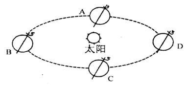 5、单选题 一年中,天安门广场五星红旗升旗最早的时间大约在下列地球公转示意图中的哪个位置(?)