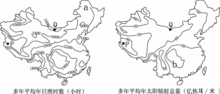 (2)简析图中P地年太阳总辐射量比Q地大的主要原因。
