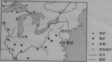 2、单选题 芝加哥是美国五大湖区最大的城市,其位置见图。1848年修通联系密西西比河水系和五大湖的运河,随后兴建铁路并形成以芝加哥为中心的放射状铁路网。这段时期,芝加哥工业主要有农产品加工、农具、交通工具等生产部门。1890年,芝加哥人口达到100万。20世界上半叶,芝加哥发展以钢铁为主导的重工业,并成为20世界美国最大的钢铁工业基地。据此完成下列各题。