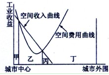 2、单选题 下图为某工业收益随空间变化曲线图读图,回答下面各题:
