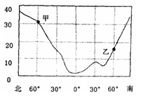 2、单选题 图是某地理要素随纬度分布曲线图,读后回答下列各题。