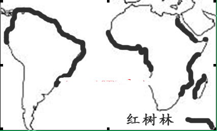5、单选题 红树林是热带、亚热带海湾、河口淤泥质海滩上一种特有的常绿灌木和小乔木群落,一般分布于高潮线与低潮线之间的潮间带中。读非洲和南美洲红树林分布图,完成下列小题。