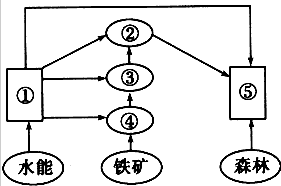 3、综合题  某地区森林、铁矿和水能资源丰富,在此基础上建立了该地区的工业体系。结合下图完成下列各题。