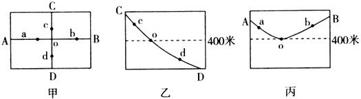 2、单选题 下图中,甲为某地的平面图,乙图和丙图分别为沿甲图相应的点所作的地形剖面图。读图回答1~2题。