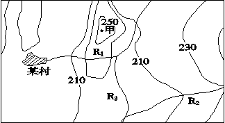 4、单选题 下图为“我国华北某地区图”,图中R1为输水管道,R2、R3为天然河流,实线表示等高线。读图,回答小题。