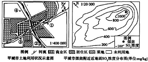 (1)根据上面右图信息,甲城市火力发电站适合选择在①一④中的