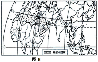 近几十年来,水资源不足已成为许多国家经济发展的严重障碍,甚至危及国家的安全和民族的生存,读图B回答: