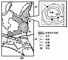 材料一:该图是我国某区域示意图及某地局部放大后等高线图。图中A、B、C、D为该地拟建窑洞处。