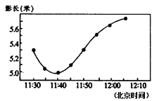 3、单选题 某地中学地理兴趣小组在2014年3月21日这一天对该校附近5米高的电线杆的影子进行测量,并绘制了电线杆影长随时间变化曲线(如图所示)。