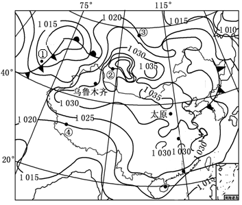 (1)此时北半球为 季。我国大部分地区盛行 风,其主要成因是 。(3分)