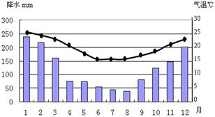 材料二:巴西东南沿海气温和降水情况
