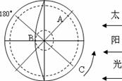 4、综合题  读图为太阳光照射图,圆心为极点,箭头为地球自转方向。完成下列问题: