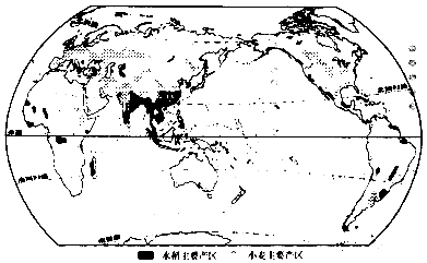 4、综合题 读“世界水稻、小麦主要产区”图,回答下列问题。