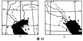 图10甲、乙水域都是世界重要的资源分布区,读图回答下列问题。