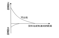3、单选题 为解决交通拥堵问题,许多特大城市都很注重地面轨道交通和地下轨道交通(地铁)的建设,下图为“地面轨道交通对房地产的影响”,回答下列题。