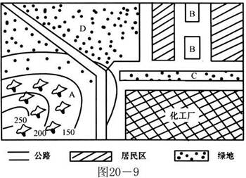 ⑷D?与居民区的热力状况不同,使空气产生对流,经绿地净化的新鲜空气流向居民区,并使居民区的气温降低,湿度增大。