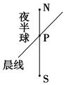 本题解析:本题比较抽象,只给出了晨线与经线的交点,如果作条辅助线,将晨线补绘出来,并标注出夜半球,则会直观得多。2月19日北半球昼短夜长,晨线和夜半球如右图所示;由图可以看出,随着地球的自转,该经线进入昼半球的范围将增大,即P点在该日会北移,但P点最北不可能到达北极点;当P点到达最北位置时,该点即晨线与纬线圈的切点,该经线的地方时应为12时。选A。