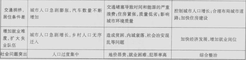 ①市区就业困难?②大城市经济发展缓慢,生活水平下降?③大城市环境恶化?④老城区地价上涨