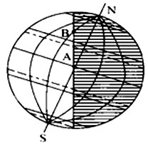 1、单选题 读下图(阴影部分表示黑夜),回答问题。