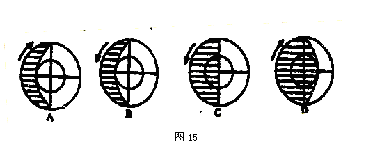3、多选题 该图,阴影表示黑夜,内圆表示极圈,中心表示极 点,箭头表示地球自转方向,。其中日期相同的是 ( )