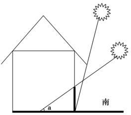 D.若在该房屋的南面造一同样高(高为h)的房屋,从采光角度看,两座房屋的楼间距至少为h/tan a