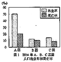 (1)A国人口自然增长率约为 ‰;在A、B、 C三国中,人口自然增长率最高的是 国,与我国人口自然增长率(2004年约6‰)相似的是 ?国。