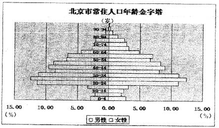 (2)此年龄结构特点对北京市社会经济发展有何影响?(4分)