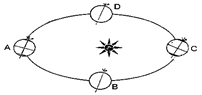 ⑵ 在地球位于A处时,北半球的节气是_______太阳直射点所在的纬线是___?__。