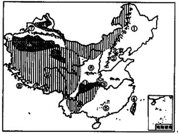1、综合题 (11分)读我国各地形区分布图回答。