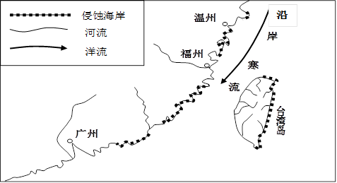 5、单选题 下图为“我国东南沿海侵蚀海岸分布图”,回答下列各题。