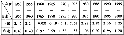 4、综合题 阅读中国与印度城市化统计表,回答下列问题。