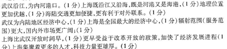 本题解析:本题考查影响城市发展的主要区位条件。注意比较分析的要求,影响城市发展的区位条件可从自然条件(河流、地形和气候)和社会经济条件(矿产资源、市场、交通、科技、政策)等方面分析,注意结合武汉和上海的区位实际分析。