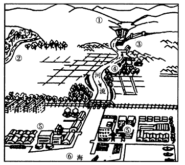 5、综合题 读“我国东部沿海某城镇示意图”,回答下列问题。