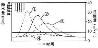 2、多选题 下图为同一降水过程形成的自然状态的洪水过程线、自然状态的地下径流过程线、城市化后的洪水过程线和修建水库后的洪水过程线示意图。读图回答1~2题。