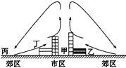2、单选题 由于城市人口集中,工业发达,释放了大量的人为热量,导致城市气温高于郊区,从而引起城市和郊区之间的小型热力环流,称之为城市风。读城市风示意图如下,回答下列小题。
