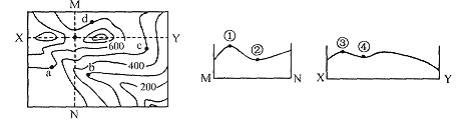 小题2:图中MN、XY两条地形剖面线的交点,在剖面图中对应的是