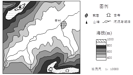 1.图中山峰与甲村的相对高度可能是2.图示区域欲发展旅游业,开发下列旅游产品,你认为合理的是