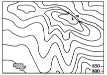 3、单选题 下图是北半球中纬度某地区的地形图,读图回答下列各题。