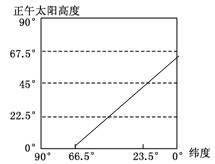 (3)用折线在图乙中画出该日北半球各地正午太阳高度的分布。(3分)