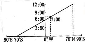 4、综合题 (10分)下图为某日120°经线上日出时刻随纬度的变化示意图,读图回答。