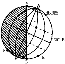 (4)此日,E点的地方时为_______点,F点的昼长为_______。