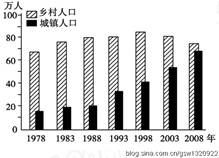 4、单选题 读我国某市1978~2008年30年间城镇人口和乡村人口的变化图,回答问题。