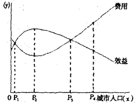5、单选题 读“城市规模的费用/效益曲线”,完成下题。